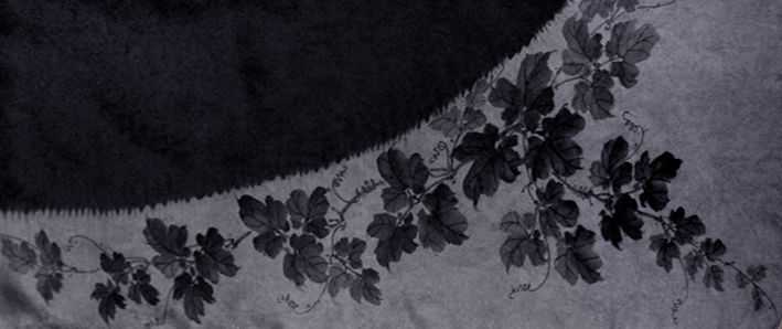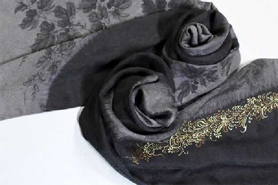 手絞りで黒とグレーの2色の染め分け 墨描きと金彩を施した