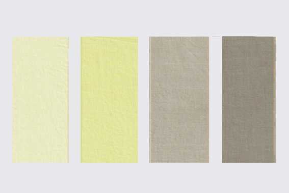 木綿染め 左からアルミ媒染・銅媒染・鉄媒染・鉄媒染(5工程)