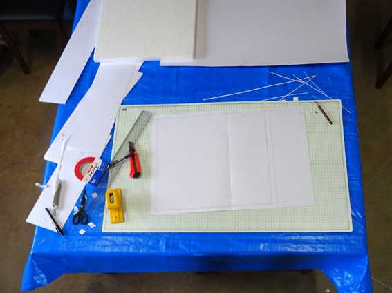 粉まみれになって、パネルと紙の寸法からやり直し・・・
