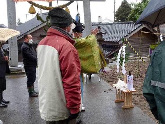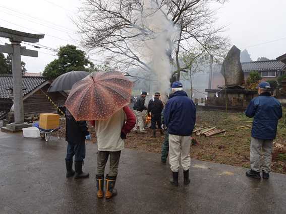 蓬莱や榊、しめ縄、門松など新年の飾りを燃やし