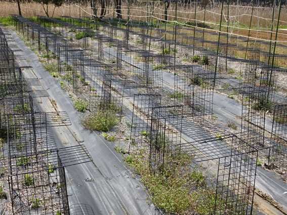 この20mの長さが6畝あって、昨年の苗の殆どから新芽が伸びている