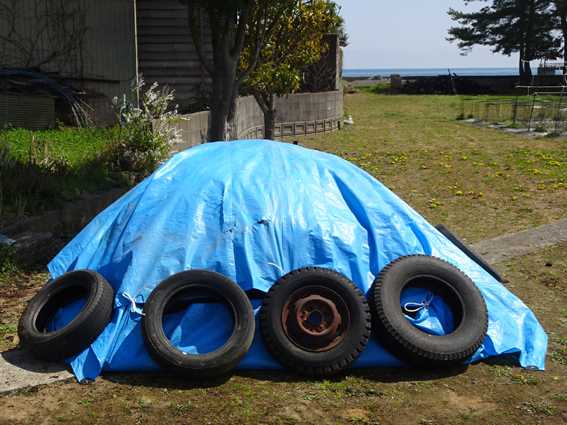 雨除けのシート、そういえば昨日も我が家の畑に牛糞を運んだの
