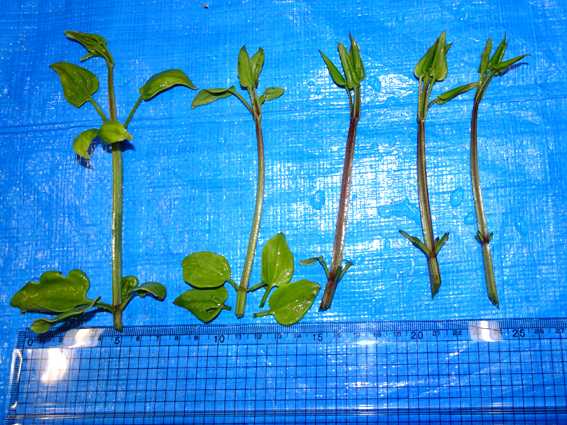 下の節の4枚の葉を切り落とし活性剤の水に入れ