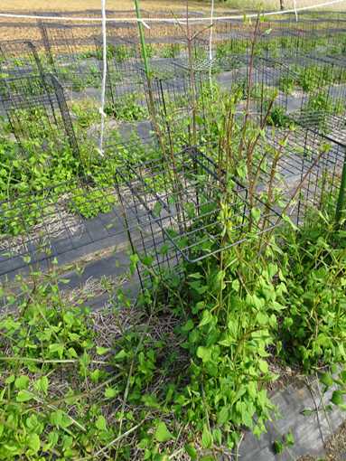 ワイヤーネット50cmの上に突き出して、横へ伸びた茎は隣の株に広がっている。