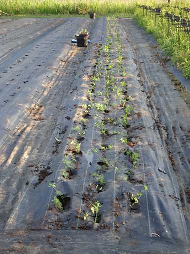 折り畳んだブルーシートが私の座る苗植えの座布団?(^^;
