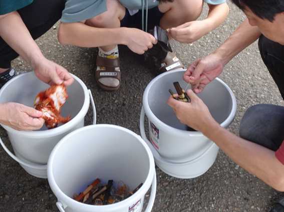 午後はエプロンとハンカチの重ね染め、休憩してもらいながら染めた