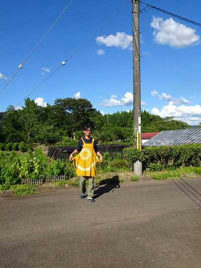炎天下!黄色いエプロンが夏の光の中で鮮やかだった