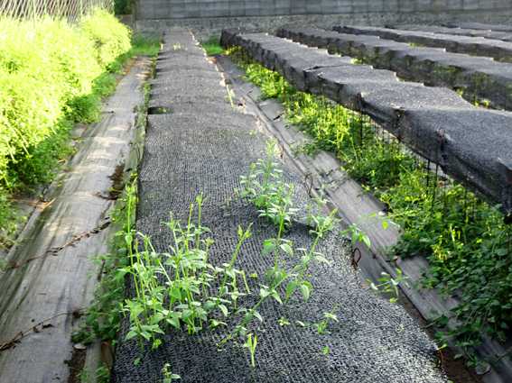 1年目でも高さ50cmの遮光ネットを突き抜ける草もある