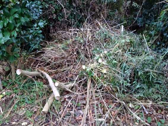 高い場所までポールを伸ばすのは無理!結局は脚立を運んで切るしかない(- -;