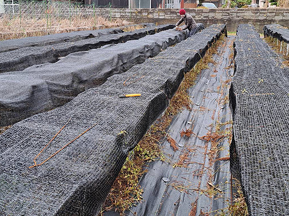 2年3年ものの枯れた茎葉もネット上から除いておく