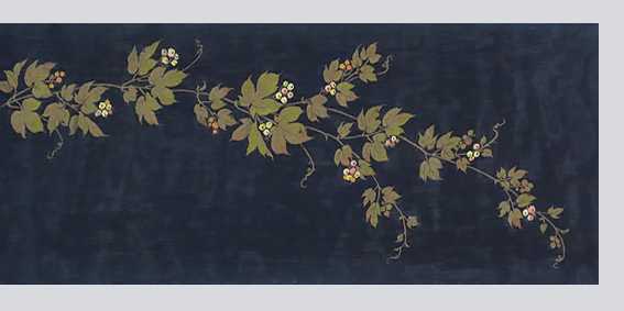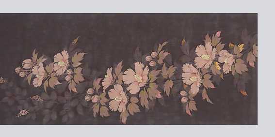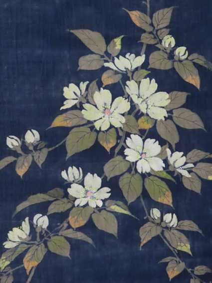 手描きロウケツ草木染め(雌しべなど一部顔料仕上げ)