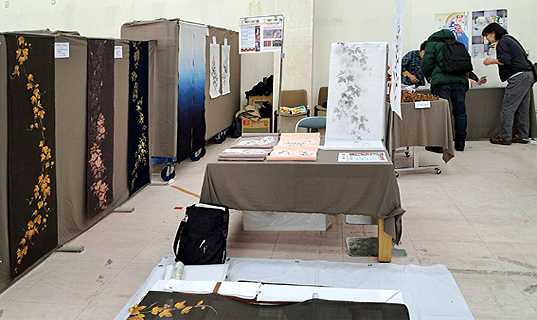 能登上布会館のブースの一角に参加させてもらった私の『能登上布の模様付け』作品も多くの人々に観ていただいた♪