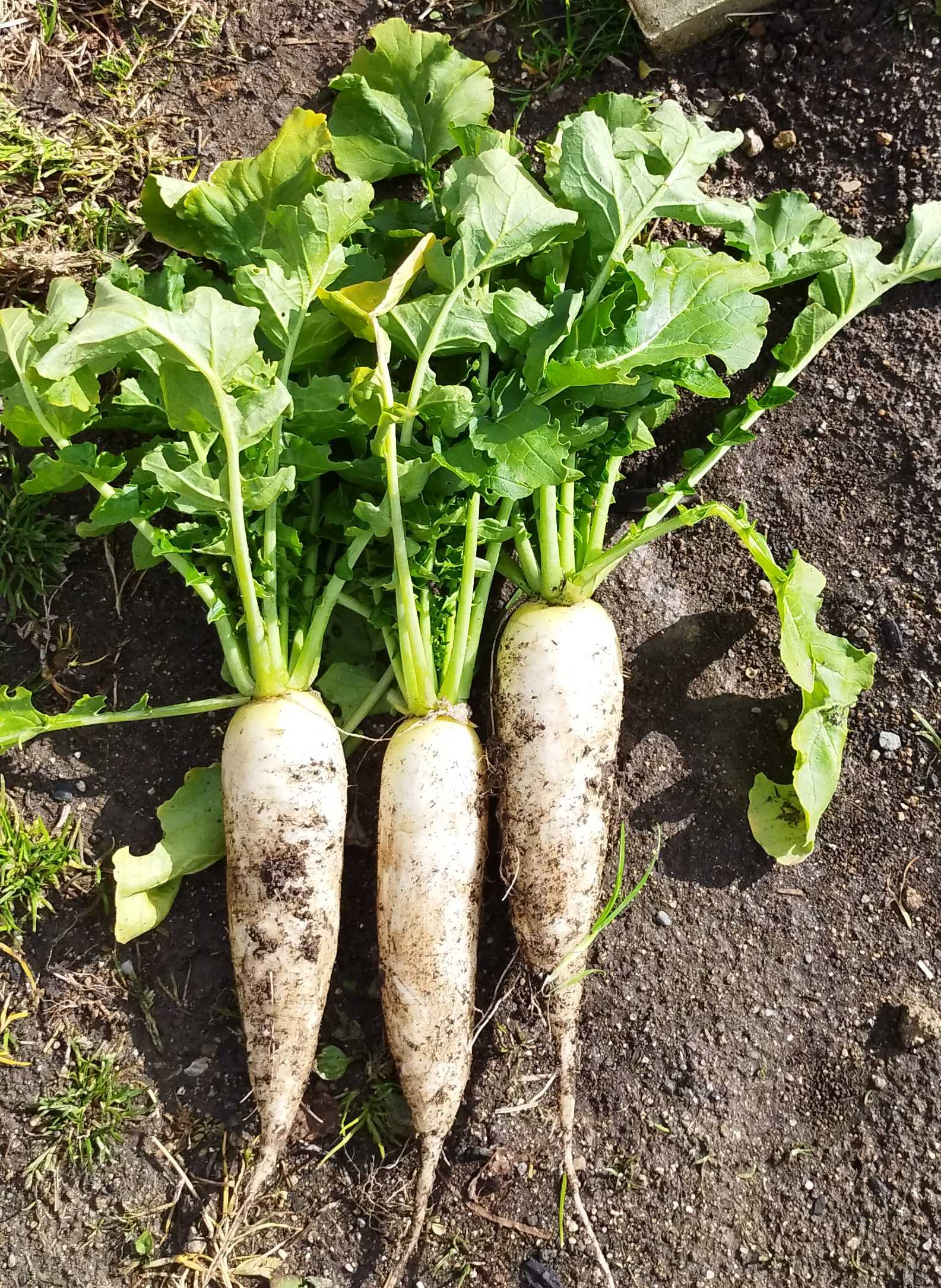おはようございます農園ネコです去年の10月の終わり(たぶん)に種をまいた大根が大きくなってきました毎年12月には収穫できるんですが今回は種まきがおそかったので成長が遅れているようですそろそろ大根を収穫したい大根が食べたいもう待てないで、大きそうなのを収穫してみましたあ、あれ?なんかぁ小さくないですか?おじさんにもらった種なんですがミニ大根とは言ってなかった、と思うし袋にもミニ大根とは書いてなかったはずなんでこんなことになってしまったんですかね?お正月のお雑煮用に細い大根が出回るんですがあれより小さいぞ七草粥の大根よりちょっと大きいかしらま、まぁちゃんと大根の味がするし良しとしますか良しとするしかない謎に小さい大根の収穫でしたいつもありがとうございます更新のはげみになりますポチっと一押しよろしくお願いします↓ ↓ ↓にほんブログ村