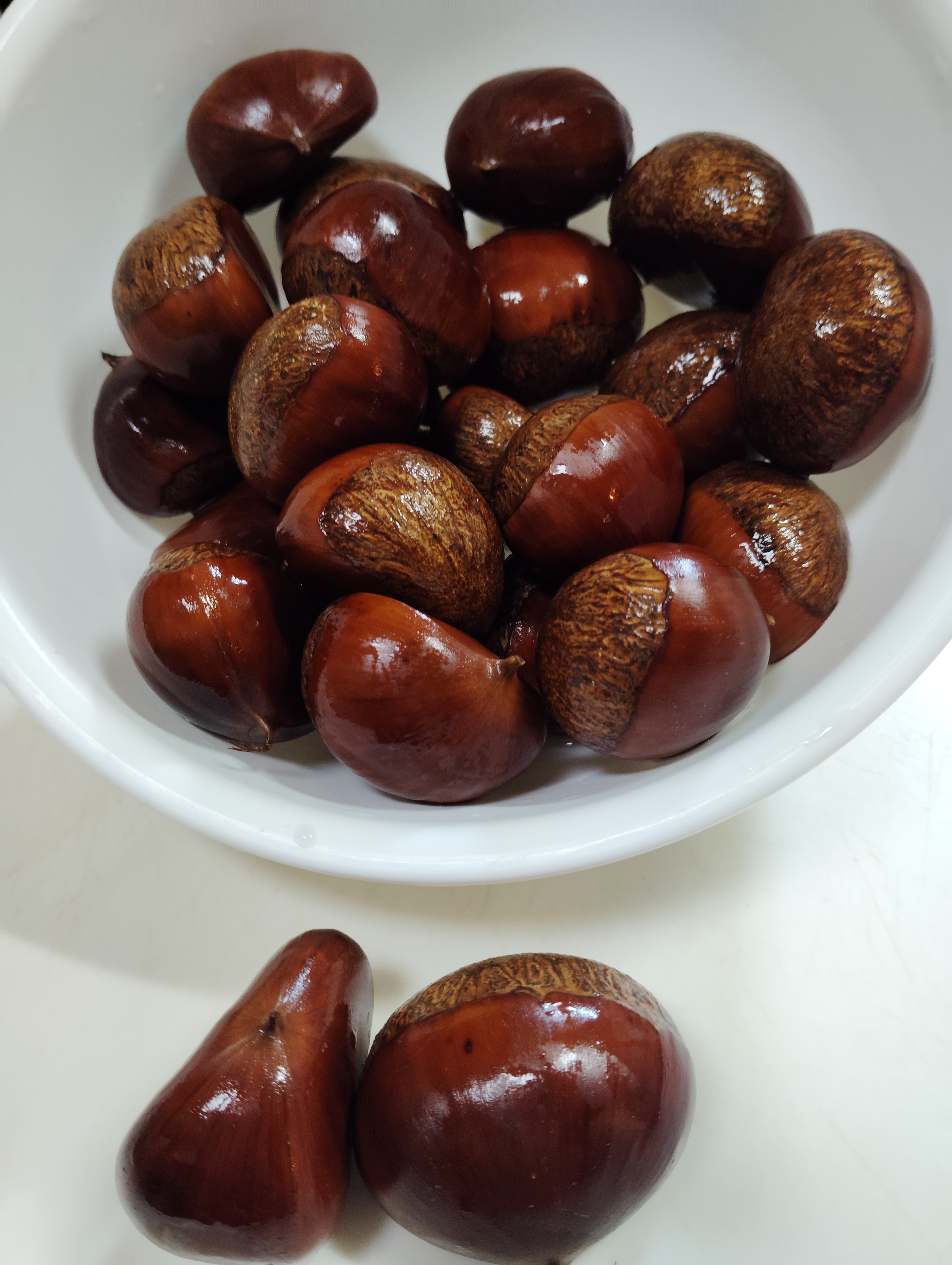 おはようございます農園ネコです栗をいただきました栗は大好きです栗ごはんでいただこうと思うのですが皮はどうやって剥いたらいいんかな?ふむふむなるほど(調べ中)しばらく水に漬けて冷凍するそうすることで皮が柔らかくなるんですってで、凍った栗を熱湯に浸け皮を柔らかくして剥く、とおっスムーズに剥けますなで、鬼皮(外側の皮)を剥いたら再び熱湯に浸け渋皮を柔らかくして剥く、とトマトの湯むきのようにするっとは剥けません、だって...だよねー🥹手強し!渋皮腱鞘炎になりそうだよ格闘すること1時間剥けた!見た目はアレだけどほんのり甘くて柔らかいおいしい栗でしたごちそうさまでした来年もお待ちしております🌰いつもありがとうございます更新がんばりますポチっと一押しよろしくお願いします↓ ↓ ↓にほんブログ村