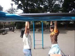 最近女子はけんすいやうんていで腕の力があることを見せてくれます。力こぶ自慢も大人のほうが負けそうです・・・。おぐり