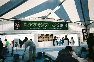 いよいよ着きました、 福島県は喜多方市・『第9回 蔵のまち喜多方 冬まつり』の中の、『そばフェスタ』の会場に! …って。 ここ数日のブログを読まれて、 「え? そば?? 喜多方って言えば、 "喜多方ラーメン"じゃないの?」と思われた方が、いらっしゃるかもしれませんが。 実はこの辺はおそばも、結構イケてるんですわ☆ 会場でもらってきた"そばの郷 喜多方"というパンフレットの受け売りなのだが(^-^;、この喜多方市にはそば打ち団体が7つあるそうで。。 その中の一つ・『おぐにの郷』というところの会員の方に、親子でそば打ちも教えていただいたこともあるぐらい、息子は大のそば好き。 この週末21日(土)・22日(日)に喜多方に行けば、『全国ラーメンフェスタ』(←同じ会場で、喜多方ラーメンだけじゃなく、札幌や久留米など、他地区のラーメンも堪能できる…というもの)だってあるけれど。 息子は、 「そばの方がいい」…ということで、うちは毎年、『そばフェスタ』の方に参戦しているのである。 ま、『ラーメンフェスタ』よりは、空いているだろう。 あのうるさい息子連れで、混んでるだろうトコへはあんまし行きたくないしな…という、親の利害とも一致してるしね。(^-^; 前置きが相当長くなったが。 会場の入り口で、まずは食券を4枚ゲット。 親子で2枚ずつチケットを分けた後に顔を上げ、会場を見回すと。 結構人、多いなぁ。。 とりあえず、息子と2人で並んで座れる場所を探し、席を確保。 その直後から、次から次へと人が来る。 続々来る…って、あ、あれ? 去年よりずっと混んでる気がするで!(-_-∥) もう一足遅ければ、私らきっと、席が確保できなかった…間一髪、セーフ! 後で知ったのだが。 去年は『ラーメンフェスタ』の時にしかなかった、喜多方・会津若松間の臨時列車や、JR喜多方駅からのシャトルバスが、今年はあったこと。 そして、去年に比べ今年は、雪がうんと少なかったこと。。 そんなこんなで、人出が増えた…んだろうなぁ。 いやぁ、『そばフェスタ』人気を私、甘く見てました!( ̄▽ ̄∥) そんなんで各そば団体のブース前に、今までの『そばフェスタ』の時よりもずっと長いこと並んで食べたのは。。 まずはさっきの"おぐにの郷"のみなさんが打たれた、"雄国(おぐに)そば"のもりそばを、親子で1人前ずつ。 私は別料金を払ってそこに、"春"の芽吹き♪、 「1日100個限定」という、雄国産のたらの芽のてんぷらもいただいて(^_^)☆ 息子はその後、もう1度この"雄国そば"を食べて、ごちそうさま。 そして私は、今度は"塩川そば友の会"というところのブースの、 "会津地鶏そば"をいただいた^^ これが以前撮影した、 会津の地鶏くんの画像で。。 それが…おいしく煮込まれて、 こんなんなっちゃいました。(^-^; 何といっても、「目の前で打ってます、ゆでてます、すぐ食べます!」ですから。 メチャしこしこ…で、めちゃウマ! もともと食べるのが遅い私。 「席が空くのを、立って待っていらっしゃる方たちがいらっしゃる」というプレッシャーで、地鶏そばはちょっと流し込み気味に食べたのだが(^_^;)、それでものど越しがいい分、スルッと食べられましたよん^^ いやぁ~~、ごちそうさまでした。m(__)m さぁ、これで今回の旅の目的の半分は達成できた。 後は…。 この日はちょうどバレンタイン、用意してたチョコ持って、喜多方の"イケメン"たち(!?)に会わないと!↓宜しければ、どちらもクリックよろしくです^^