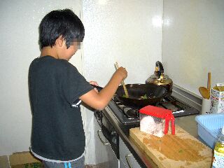 今日の11時半ごろ。 「あーあ、めんどくせ~なぁ…」 とブーたれつつ、息子は台所に立った。 家で全く料理をやったことのない息子が、小学校の家庭科で、『朝ごはんのメニューを考えよう』というのを習った。 先週・今週と2回、小学校で調理実習を行なったのだが。 今日はその総まとめ(?)。 宿題として、『おかずを作ること』という指令が出たのである。 …って。 息子よあんた、11時半…では、昼ですが? 「い~の、朝は(仮面ライダー)"ディケイド"見てたもん」 学校の宿題より、仮面ライダー…というか、その辺の時間帯の子ども番組(ニチアサキッズ)が優先するらしい。 ま、これはしょーがない。 特撮好きの私の血をひいてしまった、息子のことは言えないからな。(^_^;) そういうわけで、ここは素直に"昼のおかず"…を作ってもらうことに。 「何作ってくれるん?」 「何か炒める」 そう言って、洗面所に手を洗いに行った息子。 料理の前の手洗いは良し☆ そして、冷蔵庫の扉を開け、中を見るが…。 「野菜ないよ、かあ(さん)!」 「冷やさんならん野菜はな、その下の引き出し、"野菜室"に入ってるねん」 野菜室から、ほうれんそうを出してきた息子。 「これ炒める」と洗い始めたのはいいが。 水道水の下で、両端持って、ふきんみたいにしぼるんやな~い!!( ̄∇ ̄;) あんた、学校でほうれんそうの洗い方習わへんかったんか? 「やったけど、忘れた♪」 あのなぁ…。( ̄∇ ̄;) こーやって、葉っぱんとこは広げてやさしぃ、根っこのとこはくき広げて、砂落ちるように洗うんや…と実演して見せようとしたところ。 「作るのオレなんだから、かあは手出すな!」 あっそ!(-_-;) ほんならジャリジャリのほうれんそう炒め、一緒に食べよ。(ToT) …というのも。 息子が作ったものを食べて、親…つまり私が感想を書くのも、宿題のうちだからだ。。 息子よ、食中毒で死なばもろともだ…!(T T) そうして。 「キャー、包丁怖い~! 殺人事件だぁ~^^!!」 アホが、サスペンスものの見すぎ! 真面目にほうれんそう切らんと、指切るぞ。(-_-;) ほれ、ほうれんそう押さえる手は"ねこの手"でしょ?? 息子は、ほうれんそうの根っこ…というか、くきを半分ぐらい切り落とし。 (↑もったいない(i-i)シクシク。。) 目一杯適当にザクザク切って。 フライパンに油入れて、ほうれんそうも入れてコンロに火をつける…って。 ちょっと待て。 フライパンの中の油、温めてからほうれんそう入れるんやないんかい? 「あ、そうだった☆」 でも油まみれのほうれんそうを今さら外に出すわけにも行かず、そのまま調理続行。。 「怖ぇ、パチパチいってる~!」 そうわめきつつ、菜ばしを動かす息子。 『ま、"ほうれんそう炒め"でも、この子にしちゃ上出来♪』 130%親バカなことを思ってた、私は甘かった。 「他に何入れようかな~?」 え゛、他に何か入れる気やったん?? ほら、冷蔵庫に探しに行く前に、コンロの火止めて、危ない!(-_-;) で、探し出した食材が…、 納豆。(-_-||)ナゼ?? この後。 「塩ある?」で、塩を出してやったら、大さじ2杯近くぐらいの量を、私が止める間もなく、ダバーッ!とフライパンへ。。 「それ、…味見してみ?(^_^;)」 「やんないよ、学校でもしなかったもん」 おい~っ!( ̄へ ̄;) 「でも、塩入れすぎたかも?」で、砂糖を一掴み、バサッ! 「他に何か、入れるのないかな?」で、今度は火を止めて、また食材探し…。 もはや、『炒めようと思うもんは、先に用意しておけ!』という気すら私、なくなってます。。( ̄∇ ̄;) で、もやしをさらに加え、粉チーズ(!)も振り掛けて…、 完成☆ さぁ、いただきましょう。(ToT) これはしょっぱいだろうから、もうご飯の上にあげて、"丼"として食べるしかない…と思った私は、そうやって、水を飲み飲み完食。 ご飯のおかずの"炒め物"として食べた息子は…。 「何で~、何かニガいー!(ToT)」 『ニガい』っちゅーか、しょっぱさをベースにした、『ワケわかんない味』…だと思うよ。(-_-;) 親の私の、めんどくさがりの料理嫌いな血が、キミにしっかり、引き継がれちゃったんだねぇ…いやぁ、もうしわけない。m(_ _)m あ、それでも。 息子は自分で作ったものだから、最後まで完食はしました☆↑3食これでも、正直気にならない人だからなぁ、私は。 息子よ、済まぬ。。( ̄∇ ̄;)↓宜しければ、どちらもクリックよろしくです^^ ↓楽天ブログ以外の方、宜しければこちらをクリックしていただければ足跡が残るらしいので、できるだけお礼にお伺いしますね^^