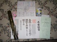 hitomiさん、あずさん、そして、いつもコメントをくださっている常連の皆様。 なかなかお返事できず申し訳ありませんが、いつもありがたく読ませていただいて、とても励まされています。 どうもありがとうございます。m(__)m そんな中。 今日、ダンナさんとともに街中へ出て、注文していたこれをとってきました。↓ 息子が4月に入学する、公立中学校の制服です♪ 『3年間の成長』を見越して、大きめに採寸してある上に、今までゴムウエストの半ズボンしか履いたことがなく、まだベルトとか慣れなくてちゃんとできないので、絵に描いたようにダボダボになってます。。(^_^;) そして。 「オレ、コロコ○(コミック)読んでたのに~! 何で今着なきゃいけないんだよ?(ーー;)」 文句ゆーな息子。 キミのその制服を"入学祝"として贈ってくれた、おじいちゃんおばあちゃん。 そして、日々キミと一緒にいるおばあ(義父の姉)にお見せするのが、『嫁さん』たるかあ(さん)の、皆さんに対する礼儀なんだよ。(^_^;) ↑このところの一連の検査漬けで、私自身の卒業式出席の準備(←意地でも出席するぞ!)を何もしてなかったことに気づいた。。 ヤバイ、私何用意すればいいんだ???(~_~;)応援いただけると、本当にありがたいです。m(__)m↓