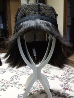 ヅラだ。↓ …と、私と同じ『銀魂』(←"ジャンプ"連載中のマンガ)好きなhitomiさんにしかわかってもらえなさそうな書き出しにしてしまったが。( ̄▽ ̄;) 昨日早速、代引きで、抗がん剤で抜け始めた髪をカバーするための『マイ・ヅラ』が届いた。 このヅラに、ヅラスタンド。 画像には撮っていないがヅラ用シャンプー&ヅラの下にかぶるガーゼ製のアンダーキャップ…で、送料手数料込み・約1.2万円だ。 まあ、一生かぶるんならもう少しお金をかけるが、そこまでお世話にならなくてもいいようなので、妥当そうな金額で手を打った形だ。 このヅラ、歴史の教科書のザビ○ル神父(でいいのか?)のように、頭頂部に毛がないのだが。 こうやって、手持ちの帽子やバンダナなんかかぶって使用するものらしい。 この先これから暑さ本番なので、家の中ではスキンヘッド、来客やご近所レベルの買い物なら、このヅラ&帽子などでごまかす…ということになりそうである。 せっかくなんで息子の前でかぶって見せたら、 「かあ(さん)、引くわ…」 思いっきしドン引きされたが(~_~;)、しょーがねーじゃんよぉ~~! 誰も好き好んでハゲてかないんだよ。(^_^;)【追伸】 皆さん、昨日のブログではご心配ありがとうございました。 結構長めにインタビューに答えたつもりだったが、無事に一言、 「(レトロな店内を見て)小学生の頃を思い出します~♪」と言ってるところのみ、ローカルニュースで使用されました。(笑) アナウンサーの須山さん、ボツにしないでくれてありがとう☆(感涙)
