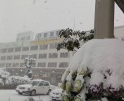 昨日検査した肺のレントゲン、肝機能障害をみるための採血、脳転移をみるための造影CTのどれも異常なし…ということで。 週末の外泊と、週明け早々の退院がほぼ決まった。 イレッサの副作用か口が渇いたみたいになっているが。(≠のどが渇いた。口の中だけが何か水気が足りない…って感じ) 前回の抗がん剤治療に比べると、すごい楽。 これで腫瘍マーカー値が下がり、本当に『効いた』と言えるのなら、私にとっては『夢の抗がん剤』なんだが。 まぁ先のことはともかく。 画像では分かりにくいが、3月中旬になった今でも吹雪なこの辺。 明日外泊できるかが不安だな。f(^_^;