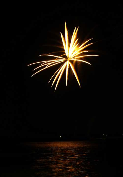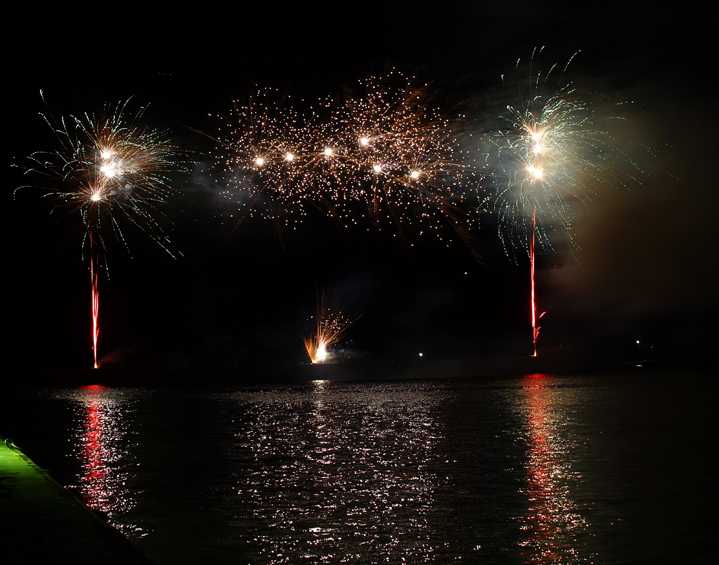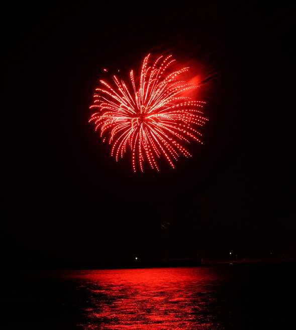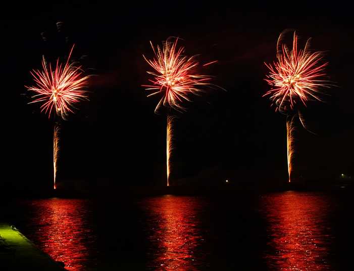三カ所からの打ち上げ 映り込み 真っ赤でした