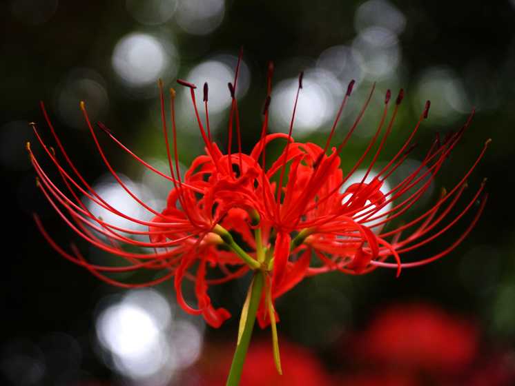 秋の澄んだ空のもとで見る彼岸花、カメラテクニックで更に浮き立って格別に見えます〆(°°)カキカキ