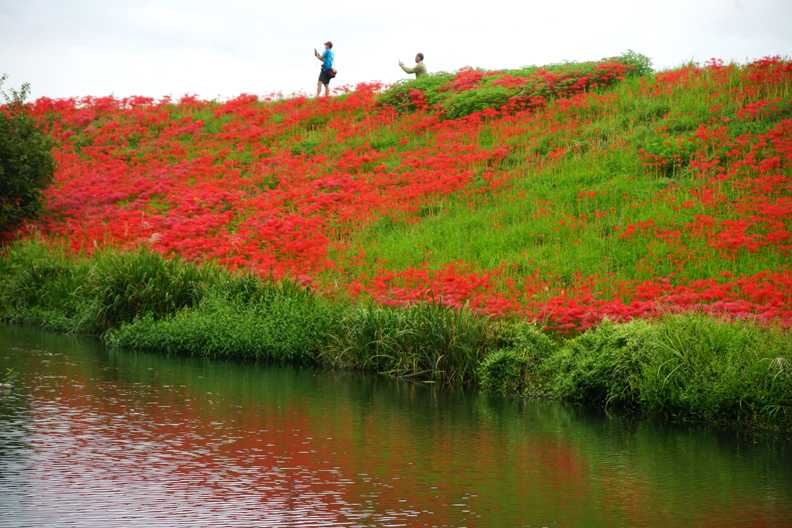 おはようございます彼岸花も 終わり コスモスに変わっていきますね昨年行きましたとき 津屋川の彼岸花 早く 今年は ピタリでは ありませんが 真っ赤の部分のありましたアップいたします平日でしたので 見学者は 少なく ユックリと回りました津屋川は 流れが緩やかですので 写り込みありました養老山脈の山並みがあり 遠望ですPRでは 3kmに渡っての彼岸花の 絨毯 約10万本となっています対岸は 木で茂っており 片側のみです少し出ている 彼岸花 撮って見ましたこの様な 蕾も 多々見かけました大木の周りに 真っ赤な 花*花 綺麗でした対岸の木の写り込みとの コポラ親子で見学 お母さんは体が少し 不自由 カバーしながら 微笑ましい 姿でしたズッと 続いてる 花の絨毯 壮観ですね小舟が浮かんでいました この場所で 観光協会のかたが投網の実演 休日のみですが 行われています振り返って 最後のシャッター となりました