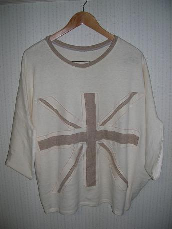 1枚目のドルマンティシャツが地味なので部屋着覚悟でアップリケをしてみました。ユニオンジャック。適当に切って張ったので微妙にずれてますがラフな感じで~。やっぱり自己満足の部屋着かな~