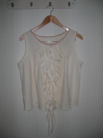 nanatoneさんのフリルブラウスがとてもかわいくて製品でもあるのですが型紙キットだととてもお安い。頑張って作るか~と。もともとは小花柄と型紙のキット。練習にこの前のドルマンティシャツの残り布で作ってみようと。でもニットだったので大きめにできてしまいました。カーディガン必須です。襟ぐりも脇も大きくなっちゃいました。とってもかわいいです。でも布帛で作らないとね~襟のパイピングをリバティ使いました。やってみたかったんです。外にもきていける服作らないとね。型紙キットは布と型紙と1枚の説明書。この型紙中級程度だから説明が簡単なのかな~。わからないところは適当に作っちゃいました。