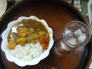 今日は夕方からが降ったり止んだり今は止んでいます。そのせいか、夜になってかなり涼しい 今夜はエアコンも扇風機も必要なしです。ぐっすり、眠れそうです。今夜の夕食は久しぶりにカレーライス主人がの休憩日なので作ってみました。ご覧の通り、ごく一般的なカレーです不思議にカレーは食欲ない時でも、美味しく食べられます