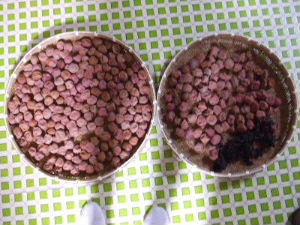 今年の梅干が土用干しも終わり出来上がりました。今年は、基本の梅干のほかに、ジューシな梅干も作ってみました。塩(梅干の重さの10%)のほかに中ザラ糖(梅干の重さの10%)を3回分けて入れてみました。中ザラ糖を入れると梅酢が早く上がりました。