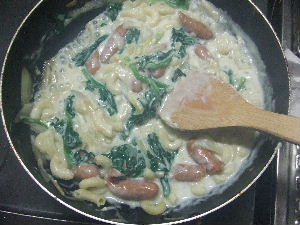 二日続きのです。 ほんとうによく降る、寒いです。 今夜は最近よく作る(週一度)マカロニソーセージグラタン今日は寒いので丁度よかった。自家製のホワイトソース、ほうれん草が相性ピッタリで美味しいです。パン粉がきれていたので、パンをすりおろして使ったら少しこげちゃいました。