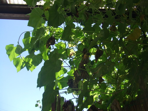 毎日、厳しい暑さが続いています~~今日も暑かったーー><家の朝顔もカラカラにしおれて可哀想ですが!! 緑のカーテンが暑さを遮ってくれます~緑のチカラってほんとにすごいですねっ^^ コレが無かったら、茶の間は蒸し風呂状態ですが、この緑のカーテンの おかげで、エアコンを点けずに、なんとか過ごせています^^ 茶の間から見るとこんな感じです^^ 茹で鶏と自家製野菜の冷やし中華^^ 茹で鶏と夏野菜の春雨サラダ 魚肉ハムと野菜のソース炒め~~意外と美味しいですよ(笑) 麻婆ナス~~^^ ジャガイモと玉ねぎの煮物~~懐かしくシンプル、普通に美味しいです^^(笑)
