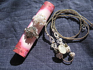 手工芸大好きamaopmaoでございます~(〃'∇'〃)ゝレザークラフト2年 陶芸3年 やりました(*^▽^*)趣味で終わってしまいました(ーー;)デコパージュも少々齧りましたが作るだけ作ったら 飽きてしまいました(>o<")トールペイントは何と!1作品で撤退木をペーパーで磨くのが嫌でございましたぁ(T▽T)アハハ!洋裁は 頭痛がするぐらい嫌いでございますぅ(/・ω・)/そんなamaopamoですが子供のセーターは(小学生になる頃までは)手編み粘土工芸とシャドーボックスは講師をしておりましたが今は引退し隠居生活ここ数年 な~んにもせずにボーっとした生活をしており指先がヘロヘロ状態に・・・指先がアルツハイマーになったような感じなのよね(/・_・\)これじゃ いかん! ボケるかも (||゜Д゜)ブログのお友達の うりゃ1960さん や あっぷるまふぃんさんの影響を受け 私も手作りアクセに挑戦することにしました!初めてですので ビーズのキットを購入しての作品作りスワロのリング1点 ビーズのリング1点 グラスホルダー1点計 3点 出来上がりましたヾ(〃^∇^)ノ♪テグスをあっちのビーズ こっちのビーズ矢印どおりに通すだけ~♪ 簡単じゃん♪ところがそのうち イライラ ムカムカ ~(-゛-;)~一体どのビーズやねん ε=(=`・´=) ! とまあ 錯乱状態に陥りながらも 出来上がりました\(^▽^)/出来上がってみると なかなか楽しいやん次は天然石で作ってみたいぞしっかり 欲まで出てきてもう少し手作りアクセ頑張ってみようと思ったのでしたおいらは手作りアクセ 絶対にイラネッ(゜Д゜=)ノ⌒゜
