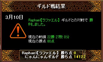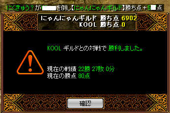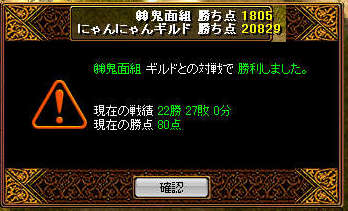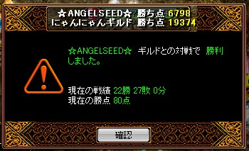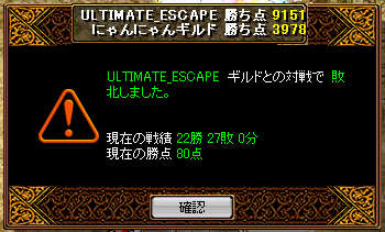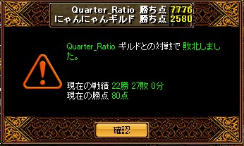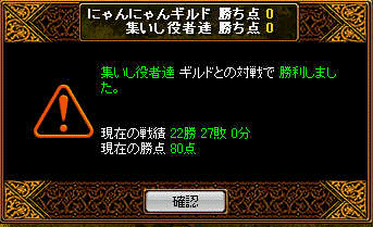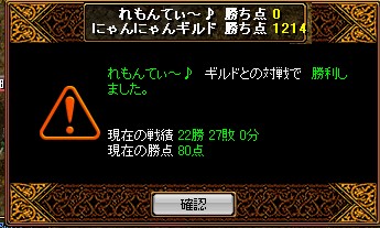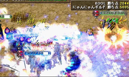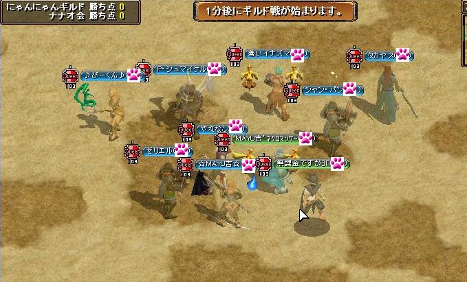 コ━━ヾ(o´∀`o)ノ━━ンチャ!!!MAYU吉です((。´・ω・)。´_ _))ペコホントに人が減っちゃって大変なにゃんにゃんギルドのみんなの勇姿をあっぷしようとおもいます((。´・ω・)。´_ _))ペコホント苦労かけます(っД`)・・・ぁ、これゎ相手さんの何人かが急にでられなくなったっていう不戦勝試合です><相手さんも含めておしゃべりしてたら、○ってーがやっちゃいまして終わっちゃいましたwまたお互いイイ時期に再戦おねがいします((。´・ω・)。´_ _))ペコ申し訳ないですが、ここからゎペタペタ貼っていきます(○´ω`)Gのことをみんなで会議した結果・・・マユネクを当分の間、封印することに決定いたしました(;ω;)にゃんのチャームポイントでもあったネク魔チャンが出動させられないなんてとっても寂しいですが・・・また!!(。・ω・。)にゃんに春がきたら出れるとおもうので、頑張って春乞いシマス(`・ω・´)ノ オーッ!!ま け な い こっと(●´3`)~♪あ き ら め な い こっと(●´3`)~♪に げ だ さ な い こっと(●´3`)~♪し ん じ ぬ ry ・・・(っ゚△゚)っ ハッ!今日2倍だしヾ(#`Д´#)ノウヮーン!!!