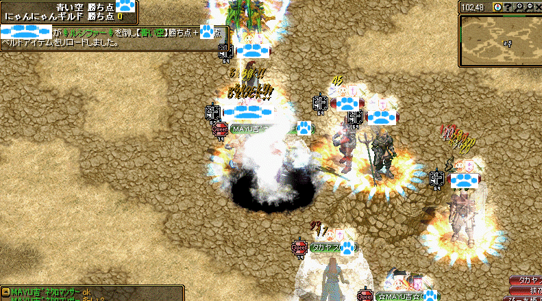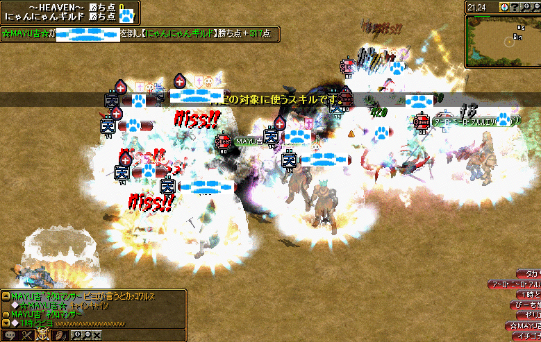 w(´・ω・`)w パッ こんにちわっ!!!マユネクです♪ (ΦωΦ)フフフ…今回の更新でやっと最新まで追いつくぜ グヘヘ ささっとGv戦歴SSあるもののみですが(;^ω^) 2009/08/30 ギルド戦対戦相手【 朱雀 】様 勝てました☆すごい人数でした!!500↑だけで2PTできてたぐらいじゃないでしょうか@@運よくワームが結構発動してくれたのでタゲあわせにも時間稼ぎできました☆めずらしくLAをとったうちのぴち・・・w載せといてあげます♪~(´ε` )朱雀様ありがとうございました! 続いて2009/08/31 ギルド戦対戦相手【栗畑共同組合】様 久しぶりの 対戦だったのですがどうも人数が揃わなかったみたいでにゃんにゃん優勢でした☆SSはMAYUが檻に攻撃しちゃって自分に跳ね返って来たっぽいSS(;^ω^)b 栗畑共同組合様対戦ありがとうございました! 続きまして2009/09/02 ギルド戦対戦相手【大人限定ギルド】 様SSほとんどなかたので結果だけ!! いぁ~強かった!相手のワームが常に発動しちゃってた感じでしたねorzいつかまた再戦おねがいします!! 大人限定ギルド様ありがとうございました! お次が2009/09/06 ギルド戦対戦相手【武装戦線】様 こちらもSS少なかったので結果のみです 見たことのある名前がゾロゾロと・・・@@でもすごくいい勝負したと思います!!固い上に痛い!そんな感じでした! 武装戦線様ありがとうございました! そして2009/09/07 ギルド戦対戦相手【ASSK真虎ズ】様 勝てました!!でもドラツイめっちゃ痛かったです!!ペットもちテイマーさんもすんごい勢いでしたw(深くは言いません@@)うちの支援陣に感謝です!!ASSK真虎ズ様ありがとうございました! (∩´∀`)∩ワーイということでこれからはもう少し小まめに更新します!以前までは仕事で結構NDSだったので(;^ω^)bということでぐっばい*^-^*
