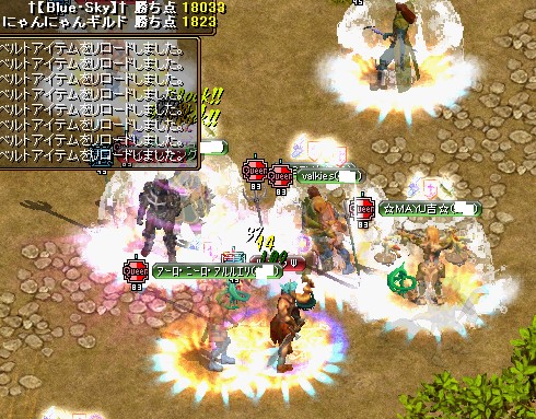 w(´・ω・`)w パッ こんにちわっ!!!マユネクです♪ みなさん今年は花火!いきましたかっ!? 私はすんごいちっさいところの花火大会いってきました♪ ここで今日の雑学~ よく、花火あがるときに掛け声として、『た~まや~』とか『か~ぎや~』とか聞いたことありませんかっ!? これってなんなのでしょう・・・。調べてみましたっ|ω・´) 花火のルーツは、軍事用の狼煙(のろし)であると言われています!花火に使われている火薬は、ポルトガルから鉄砲とともに日本に伝わり、その後、技術の発達によって、世界一といわれる今日の花火に至ったということです!「たまや~~!!」「かぎや~~!!」って言いますよね!実は花火が打ち上げられた際の掛け声である「かぎや」「たまや」は有名な花火師の屋号なんだそうです!隅田川(当時は大川)近くに「鍵屋」という花火の店があり、のれんわけという形で「玉屋」が独立しました!!もともとルーツは同じなのですが、いつしかお互いをライバル視するように・・・ 自分達の花火が上がる時は「たーまやー(の花火だ!)」、 「かーぎやー(の花火だ!)」と大声でアピールする花火師! その花火の競演に、人々は歓喜し、掛け声を真似するようになったそうです! ちなみに、鍵屋にあるお稲荷さんが一方に鍵を、もう一方に玉をもっており、独立の際に玉を譲り受けたのが「玉屋」の由来だということです!!しかしある年、玉屋が火事を起こして周囲の町は消失。玉屋は追放されてしまいました! 今では掛け声だけが生きています・・・ らしいですっ☆ では本日のGv!!!お相手は~HEAVEN~サマ☆最近にゃんにゃんは4~5人があたりまえ(●・ω・`)シュン… がしかしっ!!今日は8人ワ━ヾ( o・ω)ノ゙ヾ(o・∀・o)ノ゙ヾ(ω・o )ノ゙━イ!! 最初のぶつかり合いSS 先制点(σ゚д゚)σゲッツ!! ここで気づいたのですがお相手さん、ミラーをしてなかったようでガンガンこっちの知識ダメがはいっていきます・・・。 ミラー死を避けるためだったのでしょうか・・・。 タカさんメテオSS!!! ((´д`)) ぶるぶる・・・ 1万点突破!!! そして。。。 (´・ω・lll)ァ... ごめんちゃい(つω`、哀) すぐさま立て直して2万点突破!!! 結果 ワチョ━━ヽ(o′エ`(o′エ`o)′エ`o)ノ━━イ!!! ミナサマよくがんばってくれましたっ☆個人個人がスバラシイと思いましたっ☆ その中高得点とられてしまって申し訳ないil|li_| ̄|○il|li 相手さんですが、武道・シフさん目だってましたねぇ・・・ナイス足止め、シフに変身するタイミングスバラシかったとおもいます。今回はうち8人でGvでしたがいつもどおりならきつかったでしょうね・・・。 ギルド~HEAVEN~のミナサマお手合わせどうもありがとうございました(o´-ω-)o)ペコッ あ、それと本日から旅行にきてくださったアロさんです♪ すばらしい火力でしたっ☆ よろしくお願いします(o´-ω-)o)ペコッ