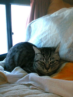 スキーに行きました♪わいわい君のバンクベッドでくつろぐしましま2号です。