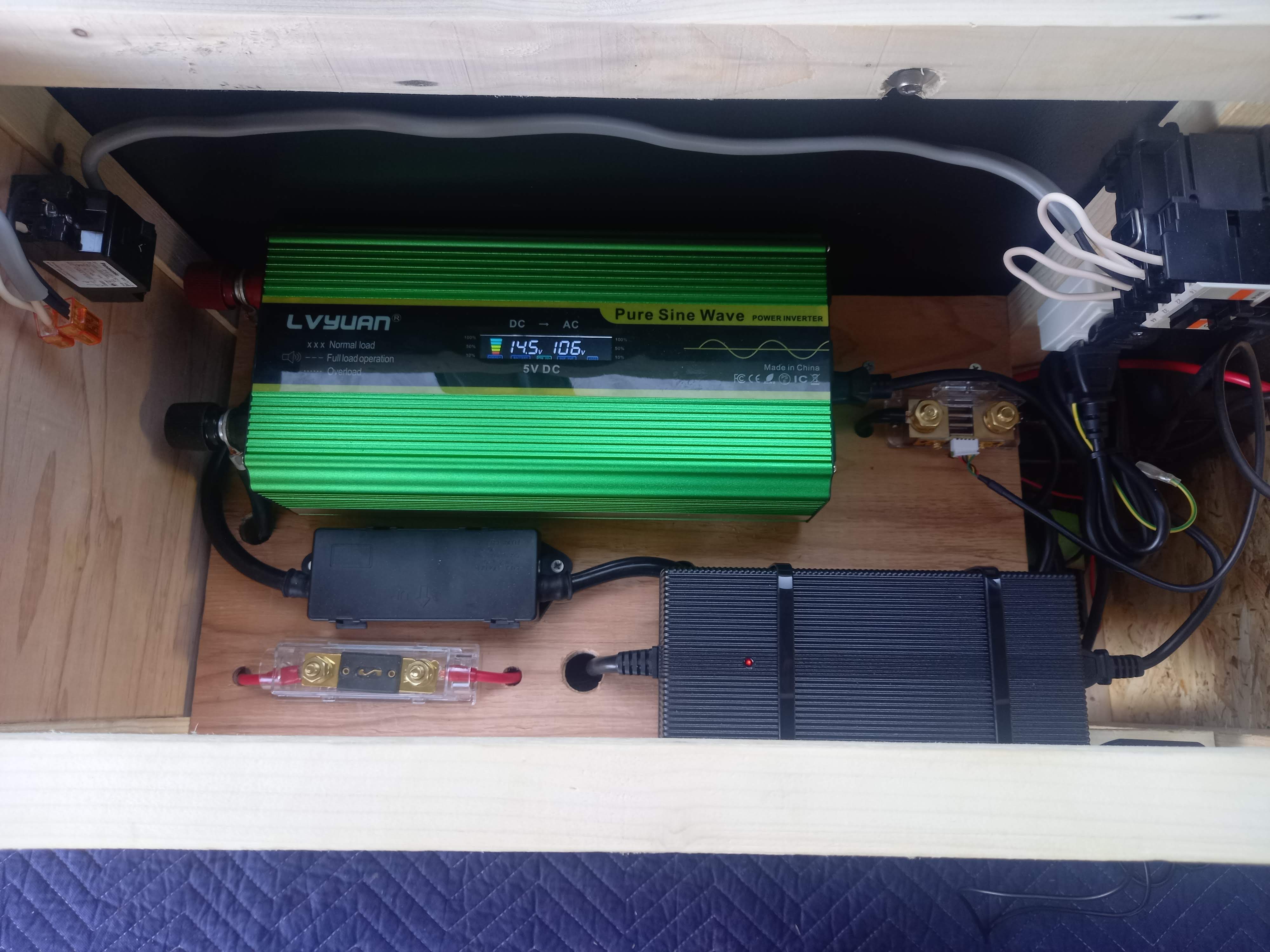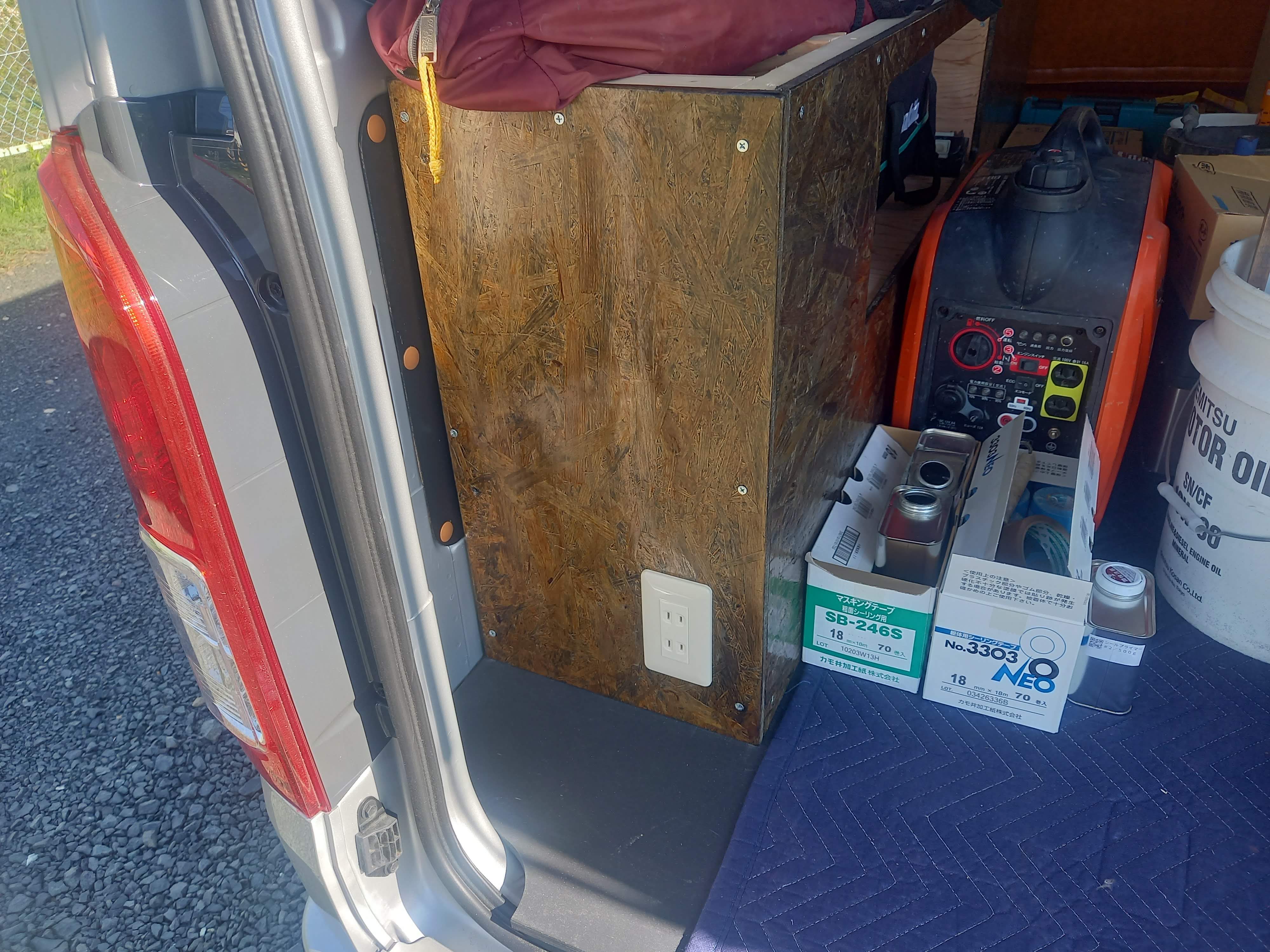 リョクエンインバーター、2日後で故障したので、後日、このスペースに収まる他メーカーの物に積み替えました。