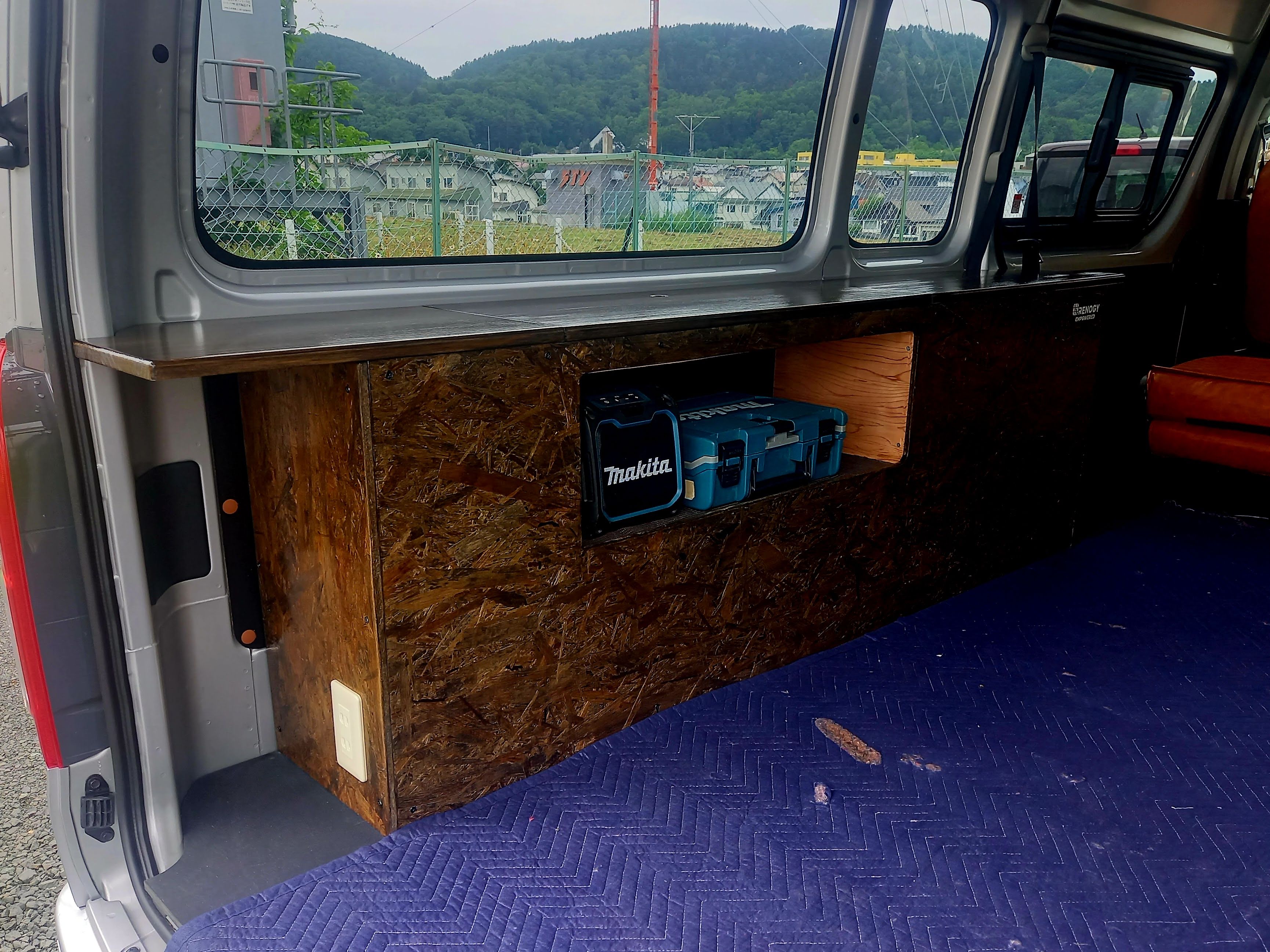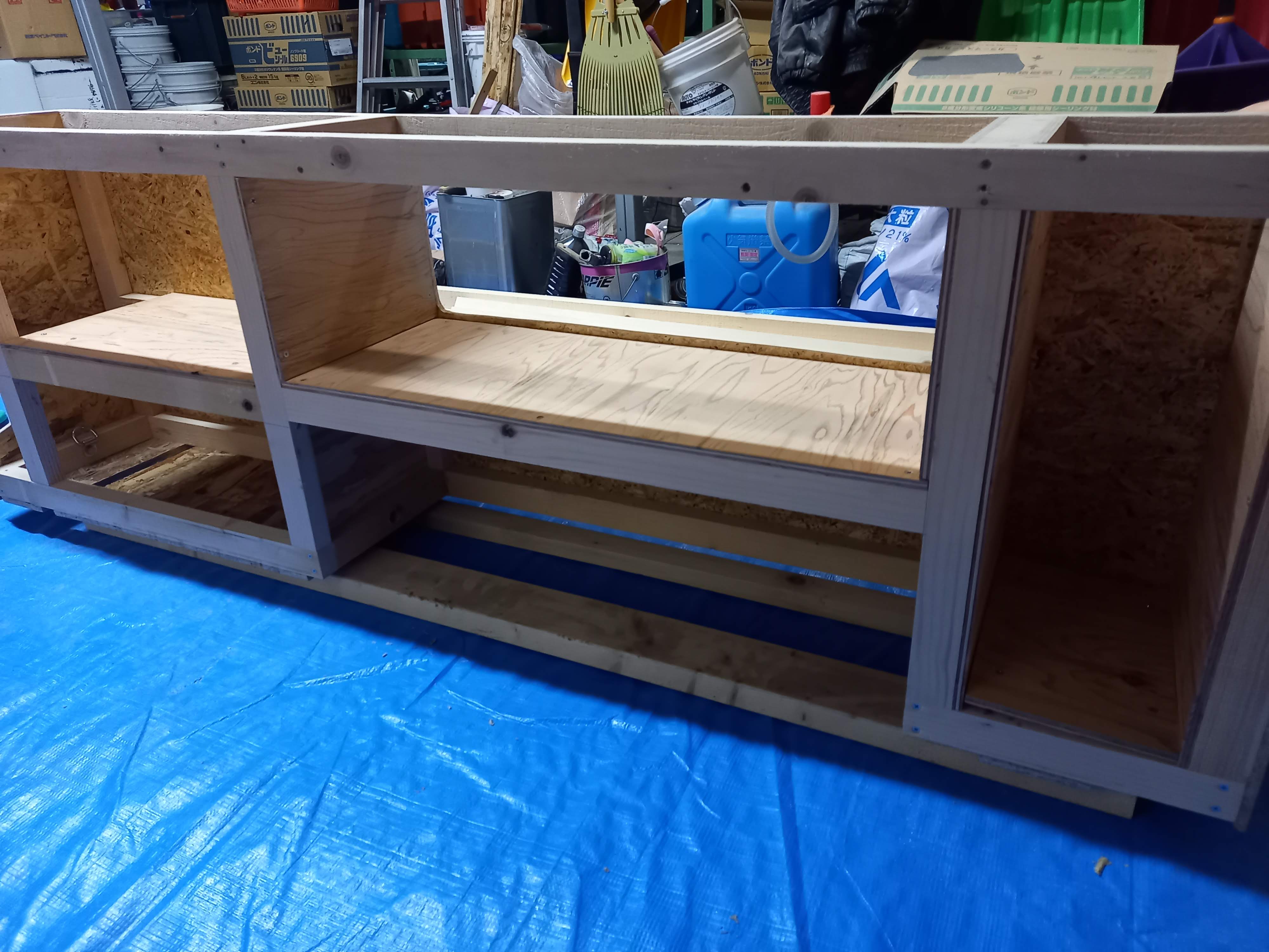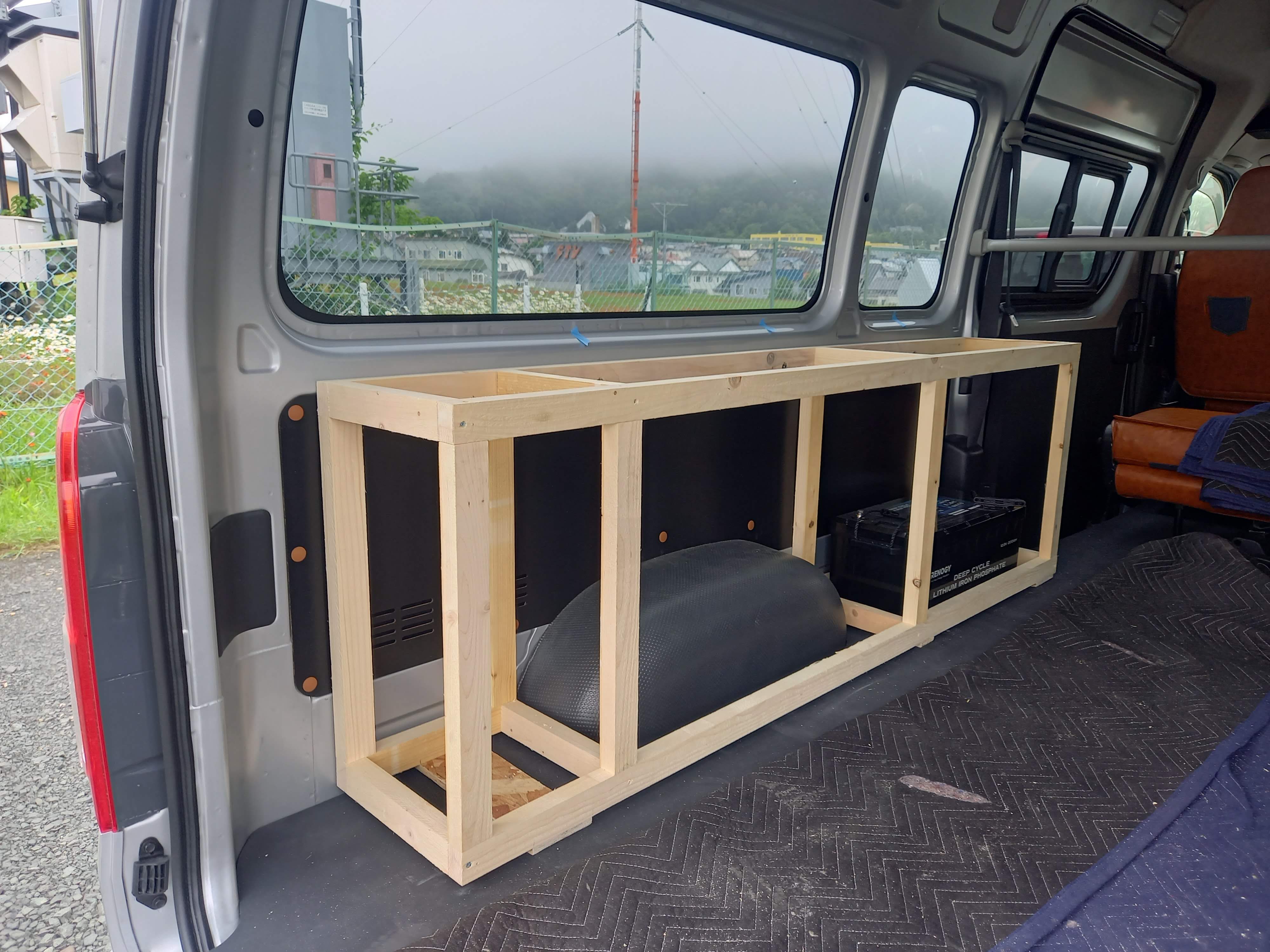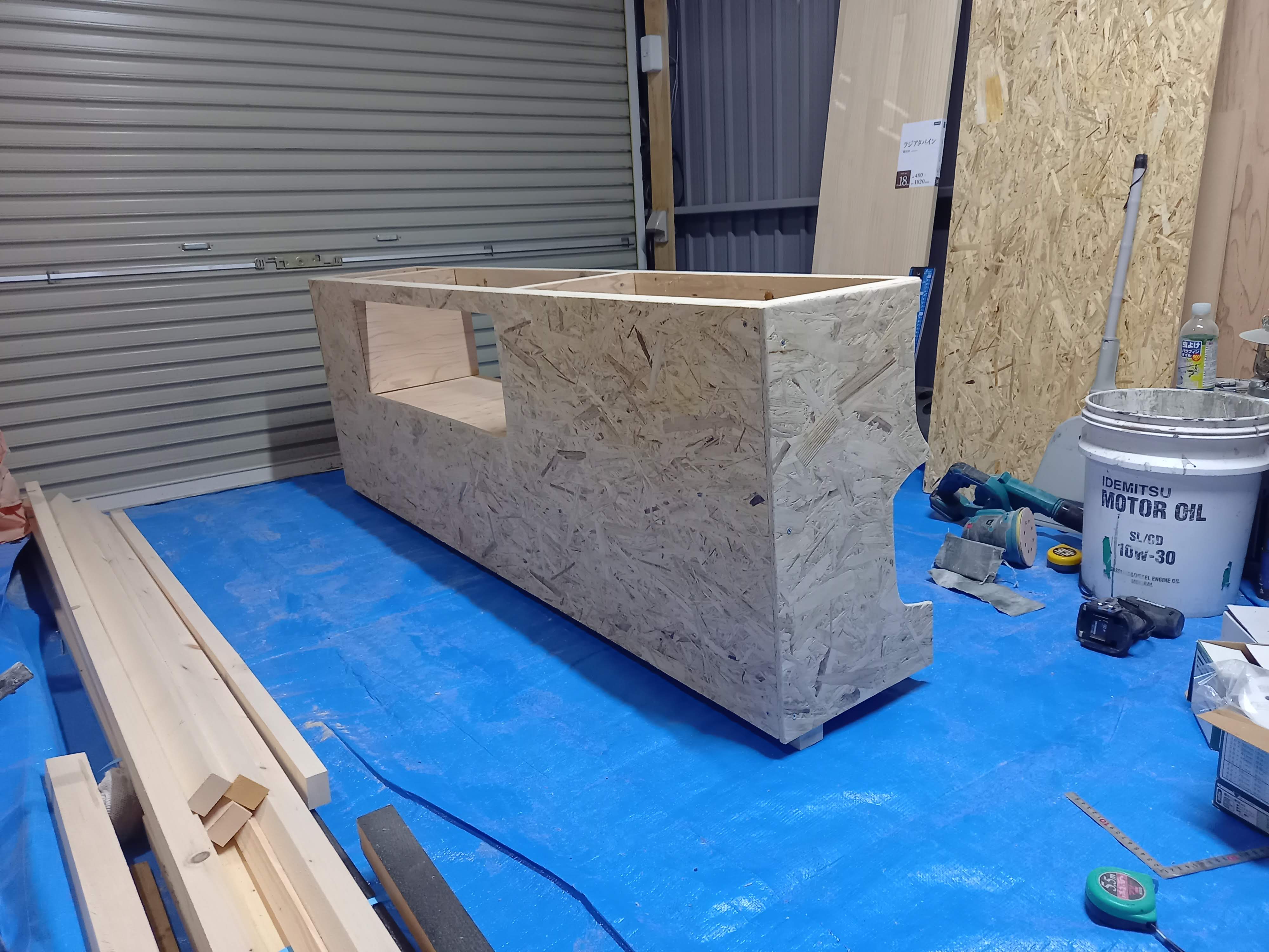 対面側の棚も制作して、天板乗せてベットにしたいので、まだまだ先は長いな・・・
