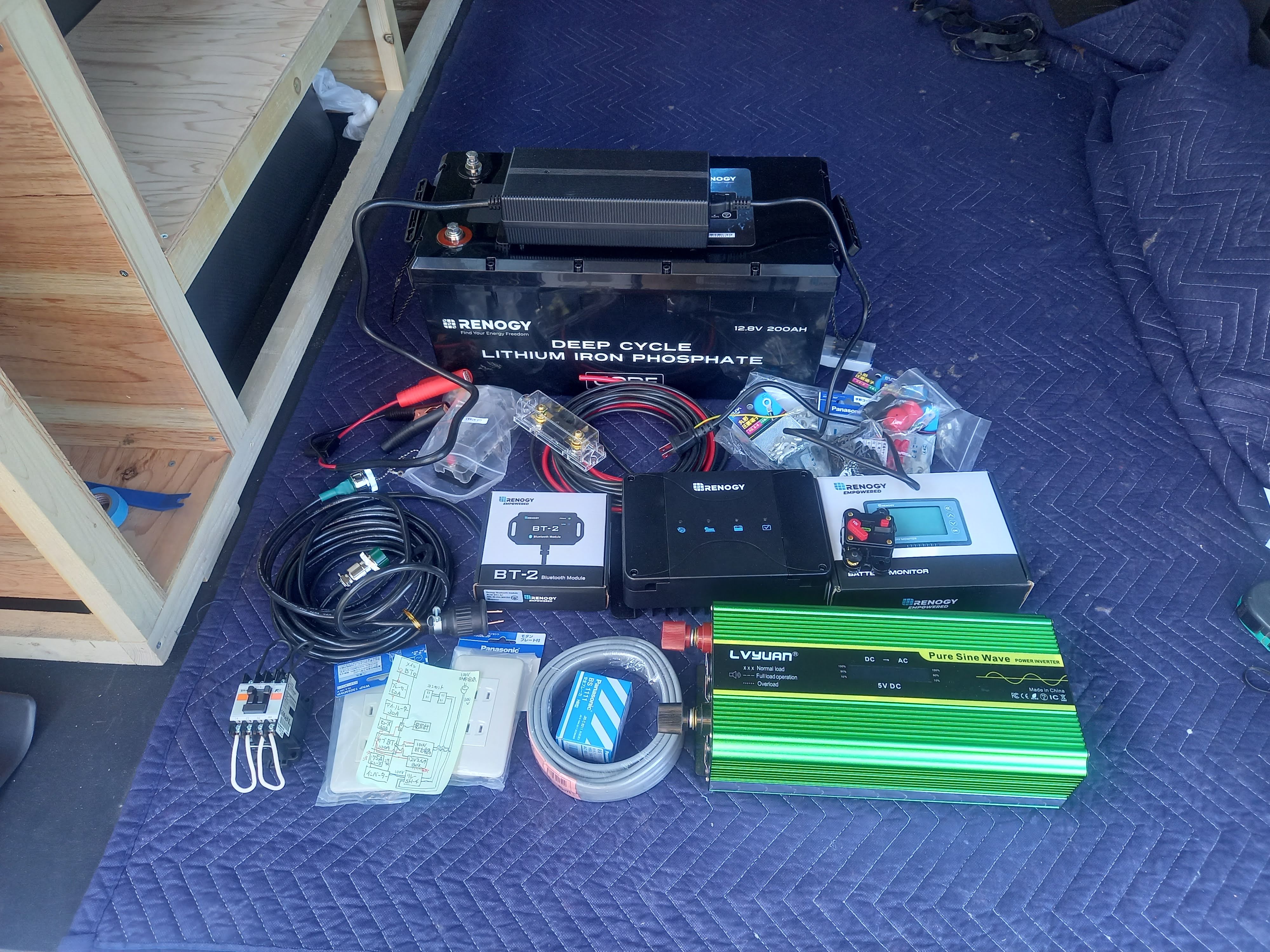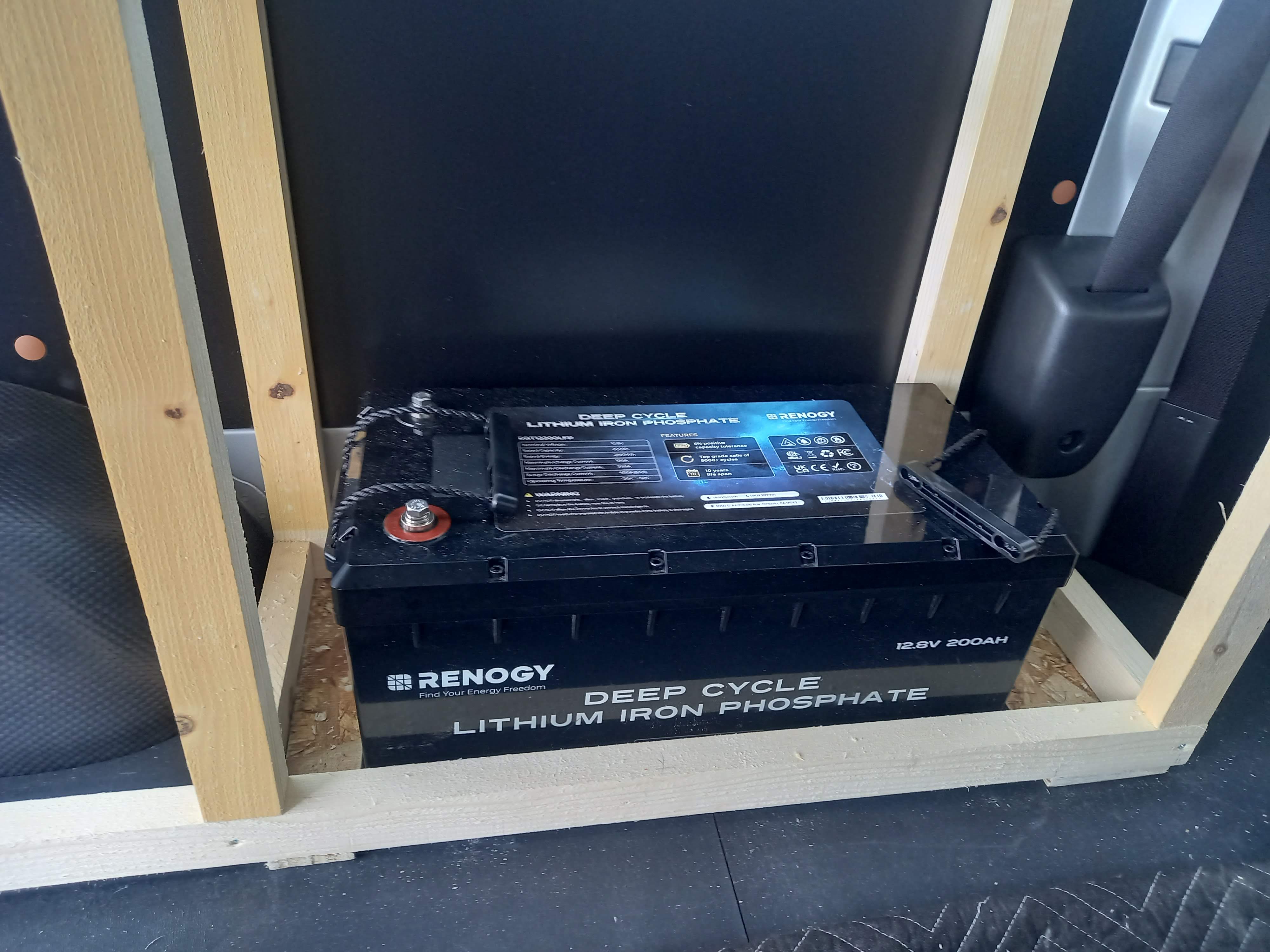 バッテリー乗せてみる。 バッテリーの上にインバーターとか設置する棚を作る予定