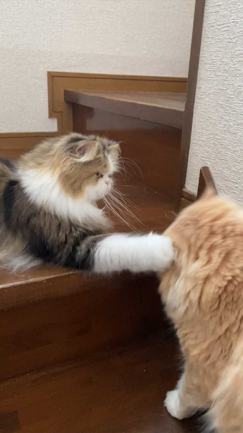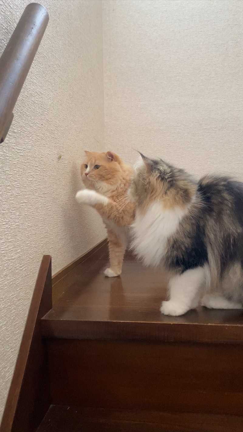 「え、なんで今⁉️」ってなったけど、本人(猫)には何か理由があったんやろね。喧嘩やなくて、遊びやったけど、もう笑ろーてしもうたったい!🤣🤣