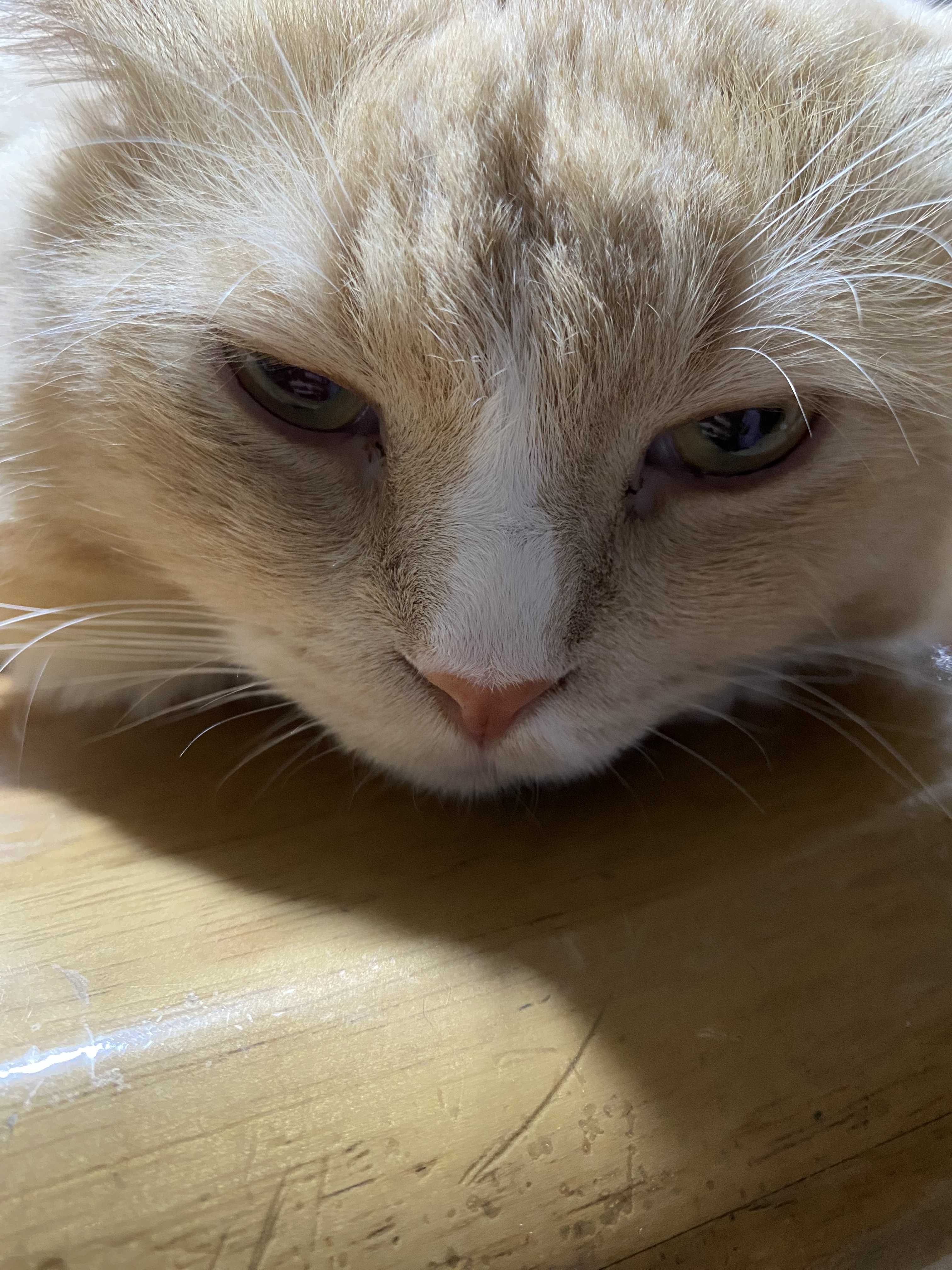 やろ?🤣 テーブルの上が一番落ち着くごたーね!あんた、本当に図々しくなったね(笑)