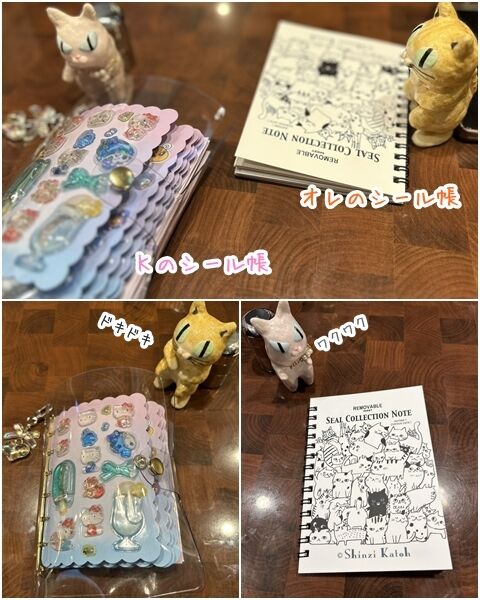 妻のKとの「シール交換」に向けて1ヶ月ほど前からシール帳を始めたオレhttps://plaza.rakuten.co.jp/nyantaro0924/diary/202509220000/ゼロからスタートしたシール収集の旅もとりあえず一段落機は熟した(ΦωΦ)!Kさん待望の「シール交換」をする日が遂にやって来たのです・‥…━━━☆・‥…━━━☆・‥…━━━☆まずは、簡単なTKルールと手順◇◇◇◇◇◇◇◇◇◇◇◇◇◇◇◇◇◇◇◇①互いのシール帳を見せ合う②先攻が欲しいシールを選ぶ③後攻はそのシールの価値に見合う分だけ欲しいシール(何枚でも可)を選び交渉スタート※あげたくない場合など拒否権あり④交渉成立or決裂⑤喧嘩はしない...平和に穏便に...◇◇◇◇◇◇◇◇◇◇◇◇◇◇◇◇◇◇◇◇こんなところでしょうかねぇではではシール交換の一部始終をまったりと見ていってくださいKは、すでにシール帳4冊目に突入している猛者中の猛者なので1冊だけでの参戦━─━─━─━─━─━─━─━─━─━─【見せ合いっこ】オレ(ΦωΦ)⇒Kのシール帳キティにクロミ...3Dやん!シールになんか液体が入っとる!すげぇグルーミー懐かし~!ねこあつめ昔やってたわ~♫ぉぉ~なんかすごいぞ!!たまごっちの集合体ですなぁ~・・・etcなるほど...なるほどK(ΦωΦ)⇒オレのシール帳ふむふむ...ゴスいねTさんが好きなイギー...かわひひTさんが好きな犬とパンダ...かわひひねこねこねこぉ~!!ジョジョ~!!からのちいかわ!?えっ...?・・・etcなるほど...なるほど互いのシールを褒め合ったりシールの出所やこだわりポイントを聞いたり「月刊ムー」昔ふたりで読みあってたね~とか...思い出話にも花が咲き終始、平和な時間が流れる~シール交換1回目~【先攻K】コレとコレ!いきなりシール2枚を要求してきましたよ(笑)Kが選んだのは「ネガティブティー」シールと自己啓発本?「メンタル」シールのセット中々良いチョイスですね。【後攻オレ】コレとコレ!選んだのは4枚「センチメンタルサーカス団」のシール・・・・・・・いいよぉ よかよぉ今日いち、平和な時間が流れる*・゜゚・*:.。..。.:*・゜交渉成立*・゜゚・*:.。..。.:*・゜ほこほこ♡ほこほこ♫~シール交換2回目~【先攻オレ】選んだのは、ずっと気になっていた天体シールの中からすべてを飲み込む「ブラックホール」だが、しかし・・・絶対にあげれないそうです。交渉決裂(ΦωΦ:)━─━─━─━─━─━─━─━─━─━─~続シール交換2回目~気を取り直して【先攻オレ】「宇宙食」シール【後攻K】「デンジとパワーちゃん」シールこ...これは痛いもう1枚分ぐらいの価値があるよ・・・追加で「アフロ犬」シールをチョイス・・・・・・・・いいよぉ よかよぉ*・゜゚・*:.。..。.:*・゜交渉成立*・゜゚・*:.。..。.:*・゜ほこほこ♫ほこほこ♡~シール交換3回目~以下省略*・゜゚・*:.。..。.:*・゜交渉成立*・゜゚・*:.。..。.:*・゜ほこほこ♡ほこほこ♫・‥…━━━☆・‥…━━━☆・‥…━━━☆こうして、第1回シール交換は幕を閉じるのでした。巷で再ブームの「シール帳」そして、「シール交換」初めてやってみましたがいやぁ~想像していた以上にめちゃくちゃ楽しかった~!他人が集めたシールを見せてもらうのがこんなに面白いとはね♫なんだかシール交換で夫婦の絆がより深まった気もします(笑)第2回シール交換に向けてまた、シール収集の旅へと・・・世界にひとつだけ自分だけのスペシャルなシール帳づくり...つづく~追記~8つ離れた姉貴にシール帳をプレゼント。シール交換に誘うK(ΦωΦ)フフフ…秋の新作TKグッズBASE店はコチラから↓↓ sideK&オリジナルTKグッズminne店はコチラから↓↓ TKworld~ねこのハンドメイドグッズ専門店~テレワーク現場のストレスと5G時代に対応電磁波対策防御グッズ「電磁番AZ」(denjiban-1301)の紹介Kanemasa/BASE店はこちらから自社で製造/販売している商品を紹介しています。国内では取り上げられることの少ない深刻な電磁波被害。興味のある方は、是非ご覧くださいませ⇩⇩当ホームページへ