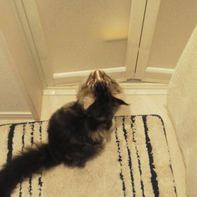 今朝起きたら玄関にハーデスのオシッコ。。。ケージからおトイレを出してからは、失敗無くやっていたのに。いったいどうした事?でも、最近気になる事が有ったんです。ハーデスがトイレで寝たりくつろいでいるんです。どうしてもあのトレーの上が好きみたい。っていうか、そこが一番みんなに近い場所なんだよね。みんなと一緒にいたいんだよね。だから境ギリギリの場所に居る=トイレの上に居るって事になってしまったのかな?今日は雨降りだったのでぷぷぷんを5時半に駅まで車で送り、雨降りの寒空の朝6時前に、ドア全開で玄関掃除ですよ・・・・・。ホースを持って水でジャバジャバ。素足のサンダルで足は痛いほどかじかむ。まぁこんな事は最近慣れっこになって来ていたのだが、数時間後にやってくれました。・・・・・玄関ウンチ。しかもモサモサ食べてるし。匂いで気づいて飛んでいったものの、多分半分は食した模様。再び本日2回目の玄関掃除・・・・・。とんだ週末だ。5時前に起きているんだからもうちょっと休ませて・・・。再びジャバジャバと玄関を洗う。洗車用のブラシでゴシゴシ。よーしきれいになった!気を取り直して、ハーデスをリビングに入れてフリー。&トイレットトレーニング。ぐーちゃんが何度もロケットアタックを繰り出します。ハーデスの鼻先数ミリをかすめて、わざと走って行くのです。つられて追いかけたらハーデスの負け。それでも平然と伏せできるように、根気よく褒めます。ぐーちゃんはハーデスが追ってこないと、今度は尻尾にちょっかいを出し始めます。そしてしまいには、伏せたハーデスに馬乗り。「ちょっとぐーちゃん、やりすぎです。」って思うけど、とにかくハーデスは反応しないようにトレーニング。既に体重はぐーちゃんの倍になったはーちゃん。本気で遊んだらきっと怪我するから。最近のぐーちゃんの流行りは、ごはんを手でパラっと数粒出して食べます。食事が始まると、パラ~ン、パラ~~ンと音がし始めます。そしてお水を飲んだ後は、手を突っ込んで濡らしてから床掃除。お皿周辺の床をきれいに(手でw)拭いてくれます。それが終わると、テーブルでノートPCを叩いている私の手の上に乗って、「完了しました!」と報告しに来ます。危うくパソコンも手もびしょ濡れになるので、タオルで両手を拭いてあげますが、拭き終わるとまた水遊びをしに走って行きます。放っておくとお腹も尻尾も水浸しになり、おもしろい事になります。さて、フリー時間が終わって夕飯の支度。しばらく忙しくしていると、ちょっと疑わしいアノ匂い。まさかと思い玄関へ行くと、おーまいがー。オシッコ&ウンチのダブル攻撃。ホント悪い意味で期待を裏切らないヤツだ。本日3回目の玄関掃除・・・・・。どうしてー?なんで急にできなくなっちゃうの?ぷぷぷんから○時○分に帰るよとメールが有りました。「2匹は良い子にしてた?」って聞くから、本日の事件をありのままに話しました。・・・・・すると。やったー!おつかれさまって、お土産を買って来てくれました~。「大きい方のねこのご褒美が一番大変だな!」って言われそう・・・・・!でもたいへん嬉しゅうございました。ぽちっと応援してね!
