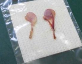生後半年経ち体重は丁度5キロになり、ぐーちゃんの去勢をしました。昨年末に動物病院の先生に相談した所、「半年まで待ちましょう。」との指示により、この1月に行う事になりました。手術前日の夜8時からは食事抜き。朝ももちろん水分以外は摂取させず、朝8時に病院へ連れて行きました。先「食事は抜いてありますね?」ね「はい。昨晩から水以外は摂らせていません。」手術の概要は昨年聞いているので省き、おおまかな説明を受けました。先「心配な事は有りますか?」ね「そりゃ心配だらけですけど、お願いします。」きっと先生は「何か解らない事は有りますか?」という意味で言ったのでしょうが、解っていながらもそう答えてしまった私です。先「夕方6時頃に迎えに来てください。」ぷ・ね「はい。よろしくお願いします。」後ろ髪を引かれる思いでぐーちゃんを置いて病院を出たのですが、ほどなくして病院から電話が有りました。どうやら説明によると、玉々がひとつ脚の付け根に入ってしまっているので、説明した通常の内容手術の他に、お腹を開腹しなければならないという事。これは放っておくと腫瘍などにもなりやすいとの事で、手術する事の承諾をしました。電話でざっと説明を聞いたけれどもなんだか不安で、ぐーちゃんの広島のお母さんに報告。「停留睾丸だったのね。 メインクーンはわりと多いのです。 見つけられない医師だったら去勢完了しなくて問題だったけど、 心配はありません。」と教えていただき、ぷぷぷんとホッと胸をなでおろしました。その日は食料品や雑貨の買い出しなど忙しくして過ごしました。長い半日が終わりお迎えの時間。病院へ出向くと、先生はまずはふたつの玉々さんを見せてくださいました。血液が付着しているほうが体中に有った方だと説明され、何処をどう切ったのか図解で説明してくださり、術後はどう過ごすべきかの指示を日単位で説明して頂きました。 先「何か質問は有りますか?」ぷ「傷口は舐めちゃいませんか?このままでだいじょうぶですか?」先「舐めてもだいじょうぶな糸と縫い方で処理してあるので心配無いです。」ね「去勢後は太りやすいと聞きましたが、食事制限は必要になりますか?」先「太ったらダイエットすればいいです。痩せれば対応した食事を摂らせればいいです。 でもメインクーンは少し肉付きが良い方がカッコイイですよ。」・・・・・まぁそうか。太る前から太る心配はしないでよろしいという事ね。部屋の奥から連れて来られたぐーちゃんは、ボーっとしてるけど予想以上に元気に感じました。助手の女性(おそらく先生の奥様?)は、奥「男らしくて良いお顔ね。 性格もおっとりしていて本当に可愛い。」と大絶賛。そういえば先生のお家もメインクーンの女の子が居るんだっけ。奥「倍ぐらいにしたいわね。 将来楽しみね!」”大きくしたい”とは、フェチ度爆発の発言になんだか笑ってしまう。とにかく無事手術が終わってひと安心。お家へ帰り、指示通り水分から摂らせます。その後ポツポツと食事も摂る事ができ、タワーには登らないものの、トコトコと歩きまわり自宅の警備を始めました。いつもは柵突破をしてはーちゃんの所へ遊びに行くぐーちゃんですが、やはり今日はおとなしいです。は「ぐーちゃん、だいじょうぶ?」はーちゃんも心配そうに見ています。翌日の今日はボーっとした感じも無くなり、よく寝ていますが、普段と大きく変わらず過ごしています。おつかれさま、ぐーちゃん。広島のお母さん、色々とありがとうございました。ぽちっと応援してね!