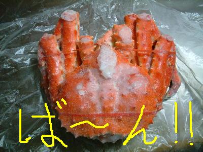 大学の研究室にいると母からメールで「すごいカニ来たよ~」 と。 今日ははあちゃん0408さんからの贈り物が届く日だったのです(*゚ロ゚)ハッ!! というのも先日、はあちゃんさんの20,000Hits目を見事に踏んでた僕に何かお礼の品をと少しメールのやりとりをしてたのです。そして今日(1月24日)に届く予定だと教えていただいてました(*゚ー゚*)フフ 母からのメールを見たあとは家に帰るのが楽しみでした(* ̄д ̄*)ドキドキ でも今日も相変わらずの回路方程式に悩まされ、四苦八苦。 さらに先生のパソコン潰れてあたふた&解体作業で四苦八苦。 んでもって先生のもう一台のパソコンに複合機のドライバをインストールすんのに四苦八苦。しかも結局インストール出来ず終いで、新しい複合機を買うっておっしゃってた(* ̄З ̄*)ヒュウ♪ 早く帰りたかったんですけど、先生がなかなか帰らなかったので先生より先に帰るワケにも行かず。。。結局大学を出たのが20時30分過ぎ。でもまあ早い方です( ̄З ̄)オツカレー♪ そして家に帰るなり父さんが「あのカニどしたんや?」と。 仕方ないんでブログでうんぬんかんぬん、ああで、こうで。。。と説明。 そしてついにご対面(* ̄д ̄*)カ、カニ。。。 ばば~ん! デカイ(*゚ロ゚)ウワッ!! 重い(*゚ロ゚)ヌオッ!! たらば蟹丸々一匹(*゚ロ゚)ドッヒャーッ!! す。。。すげえ。 すんげえカニが来てたよ。。。ビックリです( ゚д゚)ポカーン はあちゃん0408さん、本当にありがとうございます(o^∇^o) 今年は6月に国際学会で韓国・ジェジュ(済州)島に行く予定ですので、その時のお土産を楽しみにしていてください(*゚ー゚*)フフ 蟹はありがたく戴きます(* ̄З ̄*)ウマソー♪