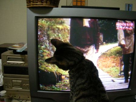 こんばんは、ごえもんママです。昨日ごえもんママは、ちょっと朝早く出かける用事がありごえもんに、「あとでパパを起こしてね、よろしくね」と言って出かけました。パパは襖を隔てた寝室でまだ寝ており、ごえもんはリビングでくつろぎ状態。あとでパパに聞いたところ、パパが起床する時間より少々早い8時に『にゃごーーっ、にゃごーーっっ!!」』と、リビングで力いっぱい鳴くごえもんの声。あまりの声の大きさに飛び起きて、襖を開けたパパが見たものはコタツテーブルのど真ん中にキチっとおすわりして雄叫びをあげるごえもんの凛々しいお姿・・・・(^^;)・・・・・・・・・・・・・・ぜんぜんテーブルに乗ってるじゃん・・・・ byパパテーブルには乗っちゃダメだと言い聞かせてあるので普段は(ママがいるときは)乗らないのですが。ごめんね、パパ。そういえば、ごえもんに 『8時半に』って時間言うのを忘れちゃったm(__)mテーブルに乗ったのはお仕置きモノけどごえもんはちゃんと役割を果たしてくれたんだね。どうもありがとう。今日はごえもんと二人で、テレビでポチたまを鑑賞。テーマは「超かわいい・エライペット」画面に映ったネコに反応するごえもん。んーっ、カワエエ~!!ごえちゃんもエラいもんね~ぽちたまに出られるかもねっ?!(はぁ~、親ばか)ちなみに最近、いっちょまえに、こんなアクビもします。パパの靴下つき(無臭デシタw)でも、まだパパが帰ってくると、コタツの下にビュっって隠れる、ビビリねこなのでした笑