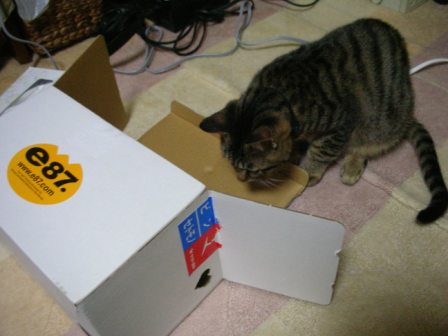 今日は、朝6時に起きてヨドバシカメラへ。しかし、既に「完売御礼」の立て札が。。ダメ元で、近所のトイザらスに行ってみたら、こちらはそれほどの並びではなく、なんとかWiiを手にすることが出来た。とは言っても、整理券は204番で、Wiiを手にするまでに4時間掛かったが。。何かのためにこんなに並んだのって、生まれて初めてかも。Wiiリモコン、結構おもしろいかもw相方は、どういう風の吹き回しか、ぬか漬けを作る気になったらしく、ぬか床を買ってきた。まぁごえもんは、当然のことながら、箱のほうが興味あるんだよね。なんだろう、収まりがいいのかな。箱のサイズを考えると、ごえもんも随分大きくなったなぁと感慨深い。相方が昨日体重を計ったら、2.4kgあったらしい。身体もそうだが、精神的にもオトナになってくれるとうれしいんだけどなぁ。明日また、ごえもんの知らない人がやってくるんだけど、ごえもん、大丈夫?