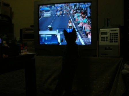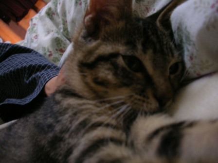 帰ったら、ごえもんは相方と寝てた。まだ21時前なんだけど。。 音に敏感なので、玄関ドアを開ける音でごえもんは起きたみたい。寝起き顔だwオトコマエに撮ってやるからなー。いい顔しろよー。おぉ。いいねー。そのままそのまま。うぉ!ちけーよ、ごえもん。デジカメのストラップに飛び掛ってきた(汗ドアップで。近すぎると丸く写るなぁ。撮った時は「やったか?」と思ったんだけどなー。暗い。。orzフラッシュたくと目が光っちゃうしなー。まだまだ修行が必要だ。Dr.コトーを見てたら、ごえもんも一緒になってみてた。祭囃子が気になったみたいだけど、かわいいのぅ。写真、撮り損ねた。。。orz